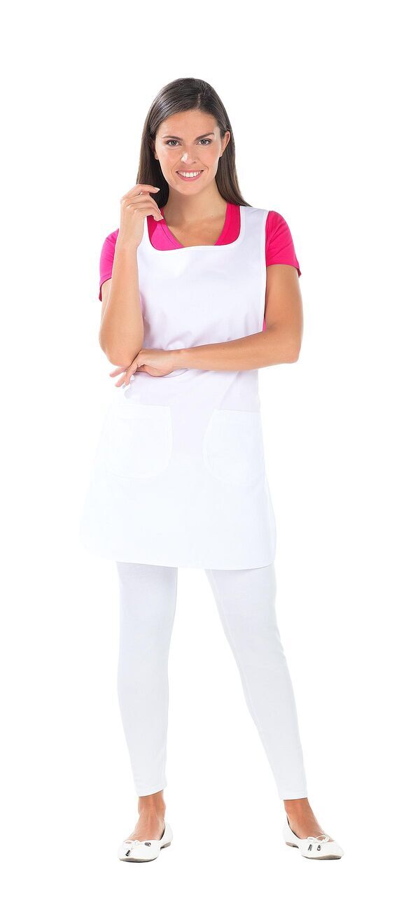 Chasuble femme. Encolure ronde. 2 poches basses plaquées. Fermeture côtés par liens. Longueur : 85 cm.