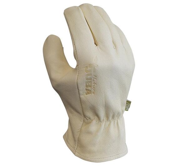 Gants monteur, tout cuir chèvre. Tannage végétal. Serrage élastique sur le dos de la main.
