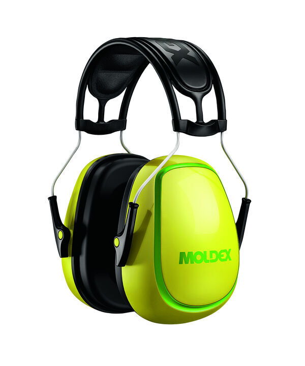 Casque antibruit M4. Serre-tête matelassé et réglable en hauteur. Coussinets absorbeurs en mousse viscoélastique. Coussins d'air cloisonnés. SNR : 30 dB.